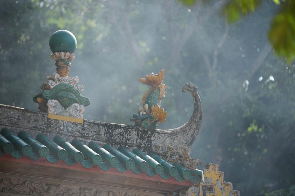 11月11日,广州市花都区炭步镇茶塘村洪圣古庙屋脊上的鳌鱼装饰。新华社发(骆紫媚 摄)
