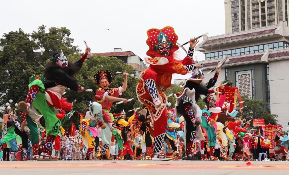 2025年2月2日,英歌队在2025年春节潮阳英歌嘉年华活动中表演。