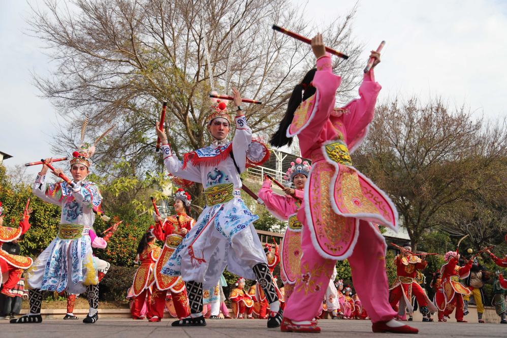 2025年2月2日,舞者在春节潮阳英歌嘉年华活动中表演。