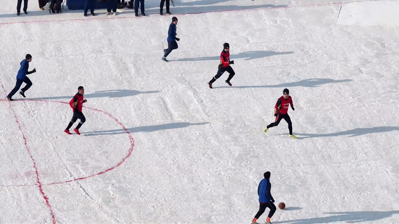 贵州“村超”队伍强势加盟,与来自黑龙江、辽宁、吉林等地的球队齐聚冰雪赛场。队员们以球会友,共赴这场集竞技乐趣、文化交流与乡土情怀于一体的冬日狂欢。