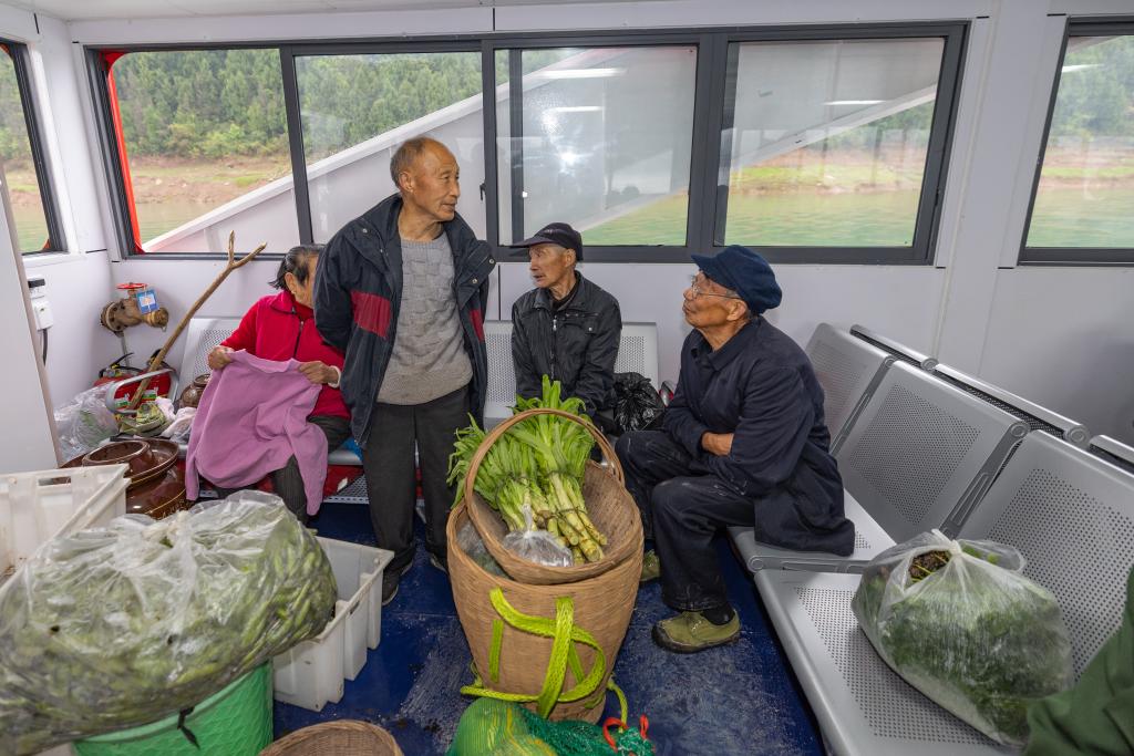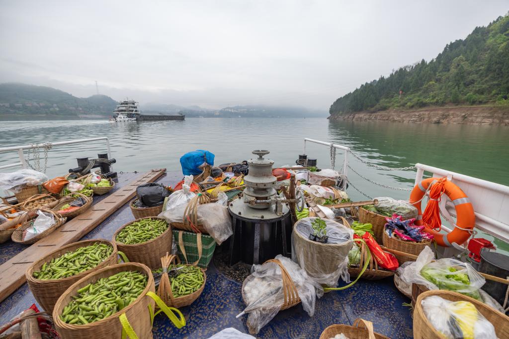 3月31日,菜农搭乘“新渝忠客2180”客轮前往忠县县城西山码头。