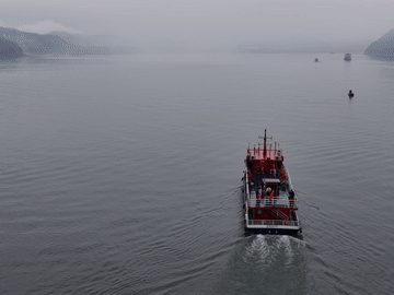 3月31日,人们自发点燃烟花庆祝“新渝忠客2180”客轮的首航(无人机照片)。