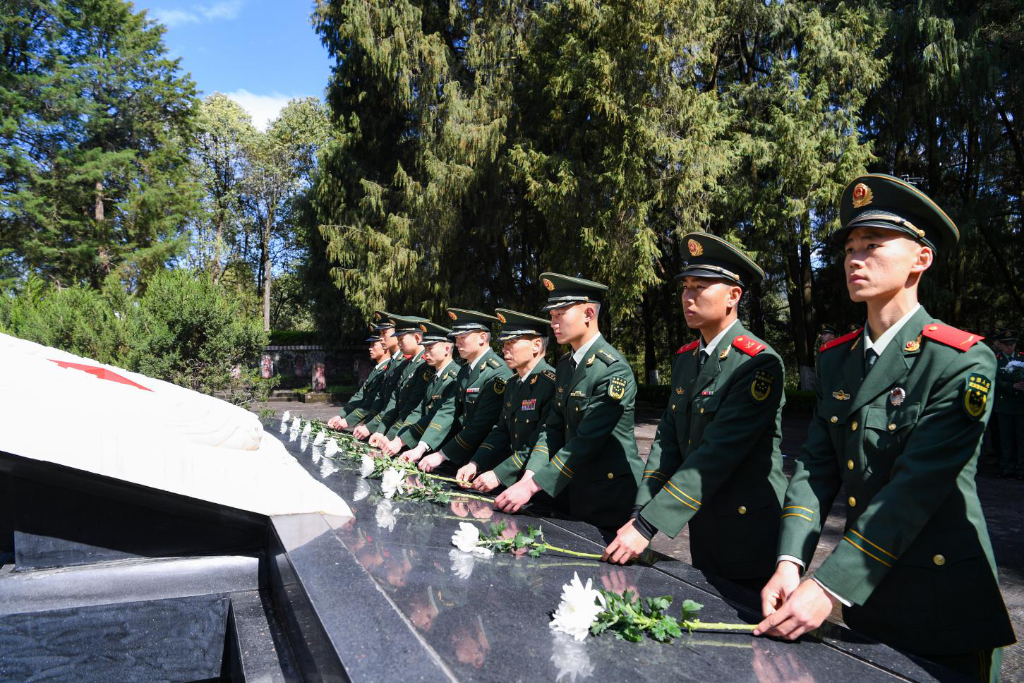 ↑武警四川总队巴中支队官兵到川陕革命根据地红军烈士陵园缅怀红军英烈。王百越 摄