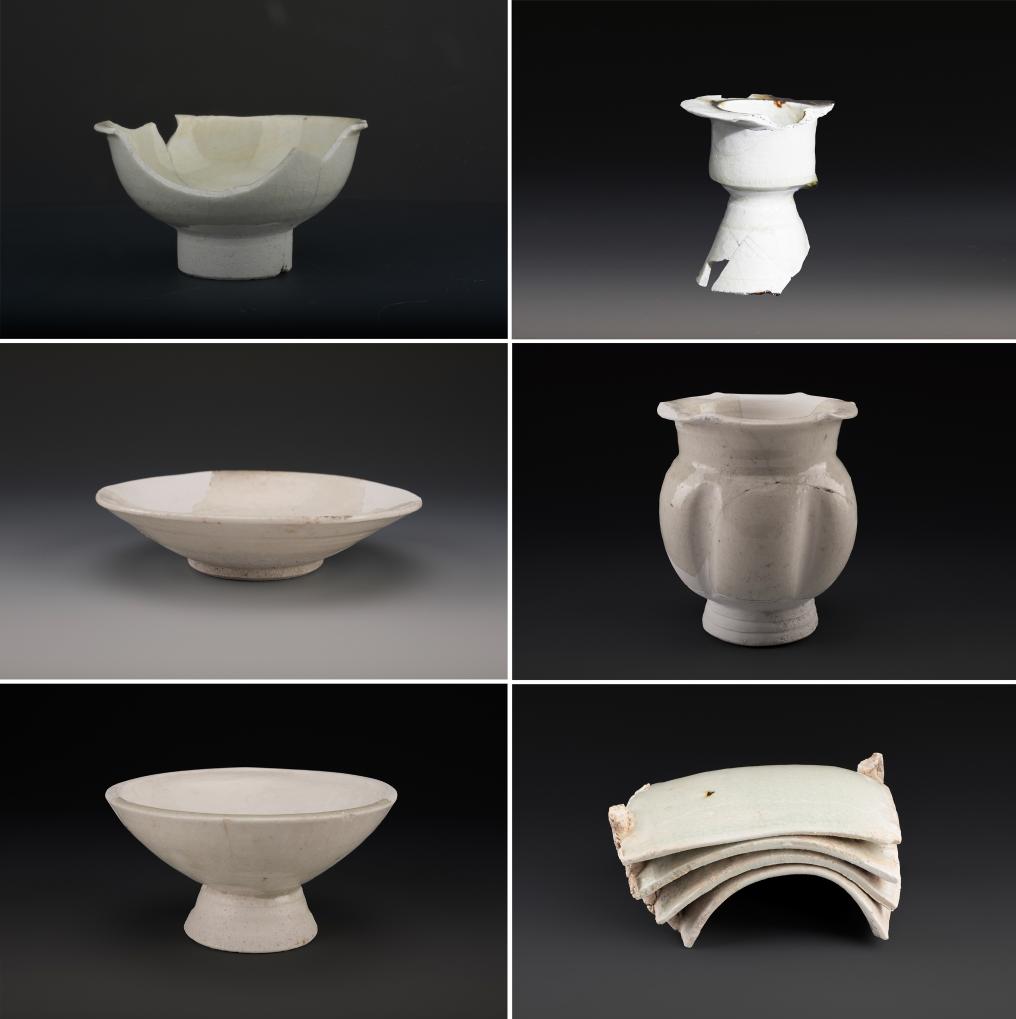 拼版照片:宁夏贺兰苏峪口瓷窑址出土的瓷器(资料照片)。新华社发