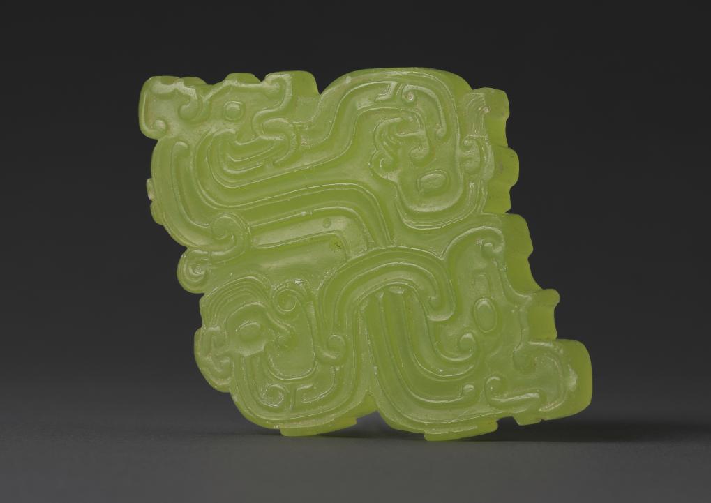 陕西富平长春遗址出土的玉人龙合纹佩(资料照片)。新华社发