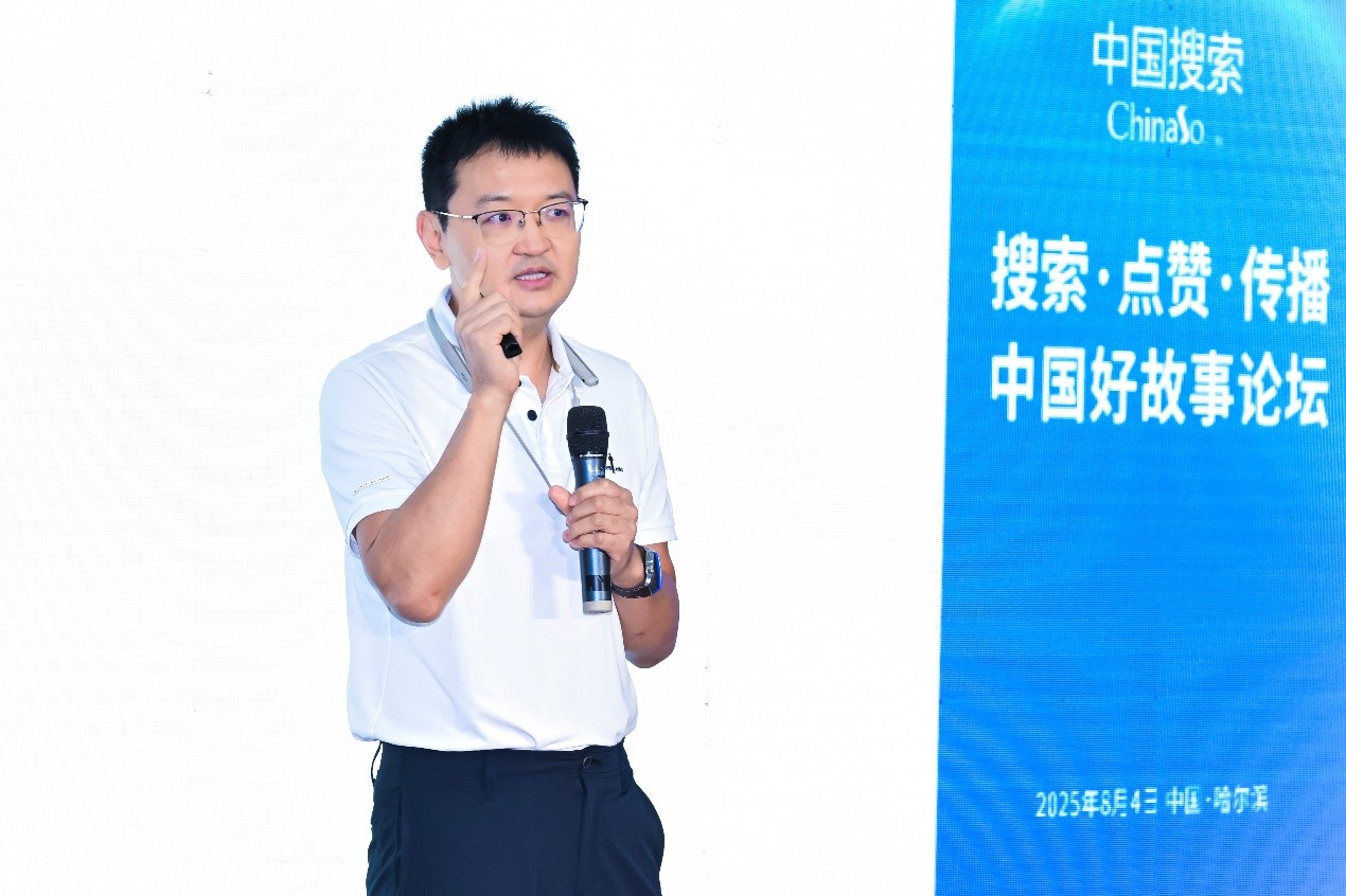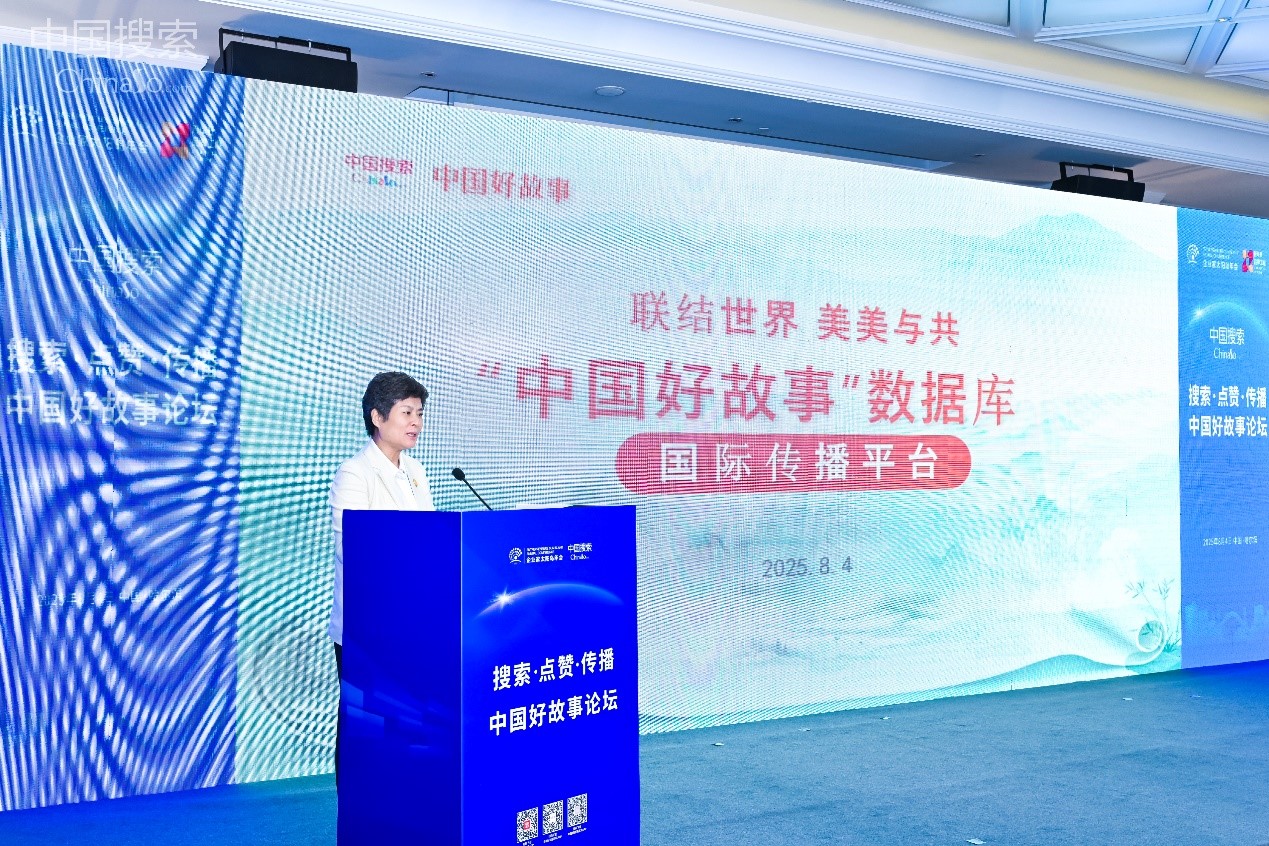 中国搜索党委常委、副总裁葛素表在主题演讲中介绍了“中国好故事”数据库的建设成果,并重点介绍了“中国好故事”六大服务体系,包括动画制作、微纪录片、专题访谈等,并通过《太阳升起的舞蹈》《一颗种子的希望之旅》等爆款案例,展现了中国故事的国际化传播力。