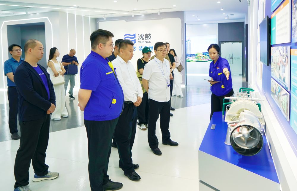 随后,调研团一行来到沈鼓集团股份有限公司。沈鼓集团主要从事大型离心压缩机、大型往复式压缩机、大型泵以及工业汽轮机等被誉为“工业心脏”的高端装备研发设计、生产制造和全生命周期服务业务。在沈鼓集团信息数据中心副主任王铮陪同下,调研团参观了公司展览展示中心和数字化改造升级后的车间。