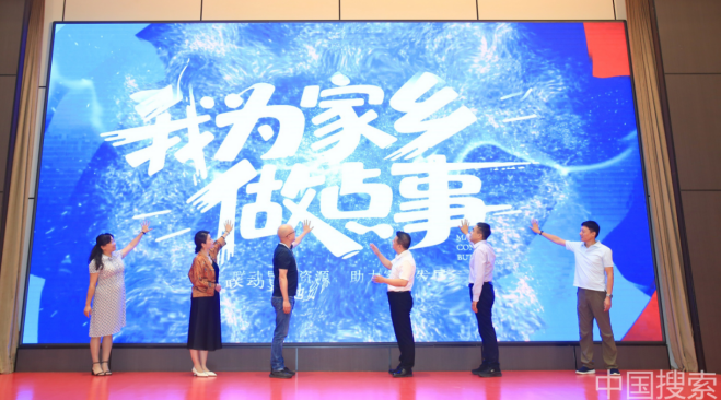 最后,来自各个商会的嘉宾同中国搜索员工一起,按下“我为家乡做点事”活动的启动键,大屏幕绽放的光彩映射在每个参与者的脸上。