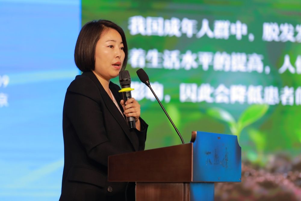 北京萌毓生物科技有限公司总经理张娟在案例分享时表示,公司以毛囊生物学为基础,致力于研发安全高效的毛发健康解决方案。