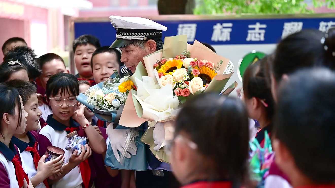 当得知“张爷爷”就要退休后,实验小学的孩子们利用休息时间给他准备了暖心礼物,以此表达自己的谢意和敬意。“张爷爷每次都会在前面斑马线旁等着我们,每次同学们都等着和他击掌,等着他那笑盈盈的面孔。我们和他相处了六年。他要退休了,我们都很不舍。”实验小学学生卞思捷说。