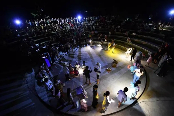 孩子们在大元社露天剧场演出戏剧。图片来源:新华社
