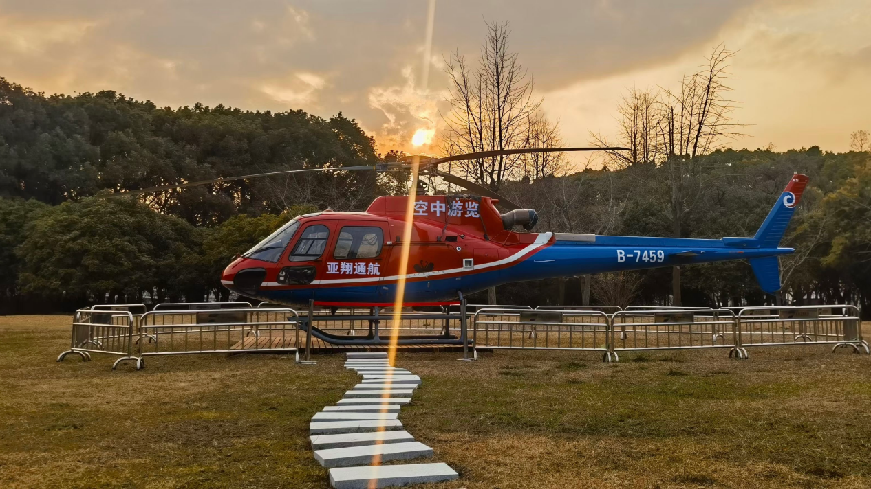 为了保障游客的安全与舒适,机场选用了AS350直升机(英文:Eurocopter AS350 Squirrel,代号译文:松鼠)作为空中游览的载体。这款直升机由法国宇航公司(现为欧洲直升机公司)生产,“小松鼠”AS350以高性能、坚实耐用、可靠性高、使用成本低等特点而著称。“小松鼠”AS350直升机每次能够搭载4-5名乘客,沉浸式赏樱体验时长整体约为10-15分钟,在飞行高度100米左右的低空穿梭“遨游”,为游客们提供了一段“沉浸式”的赏樱体验。