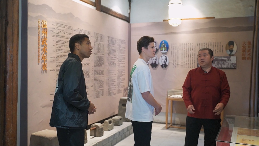 在温州南拳协会的展演过后,Akmal和Johnny在两位温州南拳传承人带领下,体验了马步冲拳和马步推掌等武术训练,并学习了挺宇散手对打等武术招式。 “多么神奇的一天!能见到这么多的‘武林高手’。不管男女老少,你都能从他们身上感到振奋的精神和十足的元气。”Johnny这样说。“温州南拳需要持之以恒的训练,今天的体验让我体会到了中国武术的博大精深,我迫不及待要和我的朋友们分享这次令人难忘的经历了!”Akmal说道。