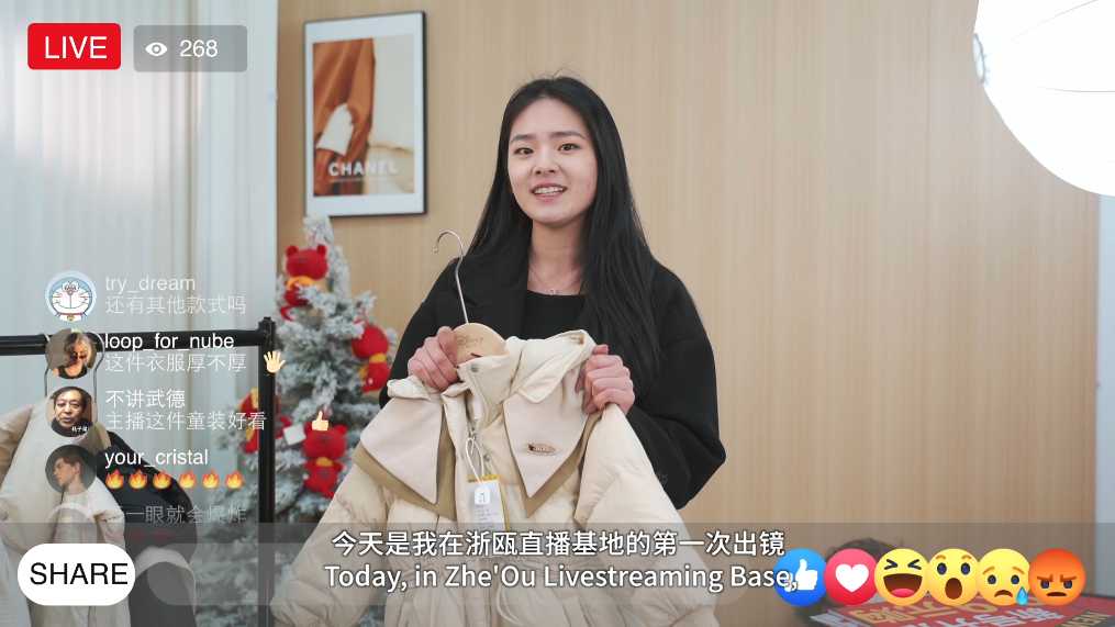 浙瓯直播基地是培养温州优秀主播的摇篮,与温州科技职业学院合作设立产教融合项目,年培训师生3500余人,为行业输送了大量人才。直播基地月平均直播150场,月平均销售额达到700万元,为温州数字经济的发展做出了突出贡献。在浙瓯直播基地初次体验主播工作,陈梦瑶的语言表达还略显生涩,但经过培训师的指导之后,她完整流畅地向观众介绍了带货商品,得到了现场培训师的一致认可。