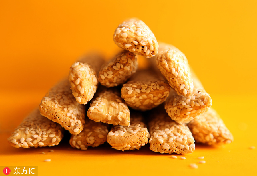 Guandong candy, a sticky treat made out of glutinous millet and sprouted wheat, is a traditional snack that Chinese people eat on the Festival of the Kitchen God.