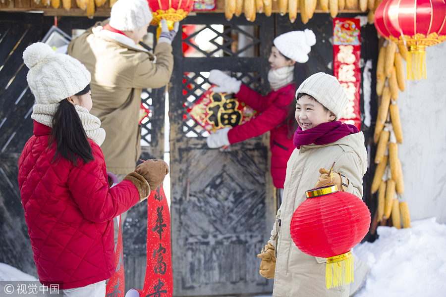 In the Little New Year, old couplets and paper-cuts from the previous Spring Festival are taken down, and new window decorations, New Year's posters, and auspicious decorations are pasted up.