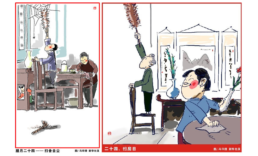 Between Laba Festival, on the eighth day of the last lunar month, and Little New Year, on the twenty-third day, families throughout China undertake a thorough house cleaning, sweeping out the old in preparation for the New Year.