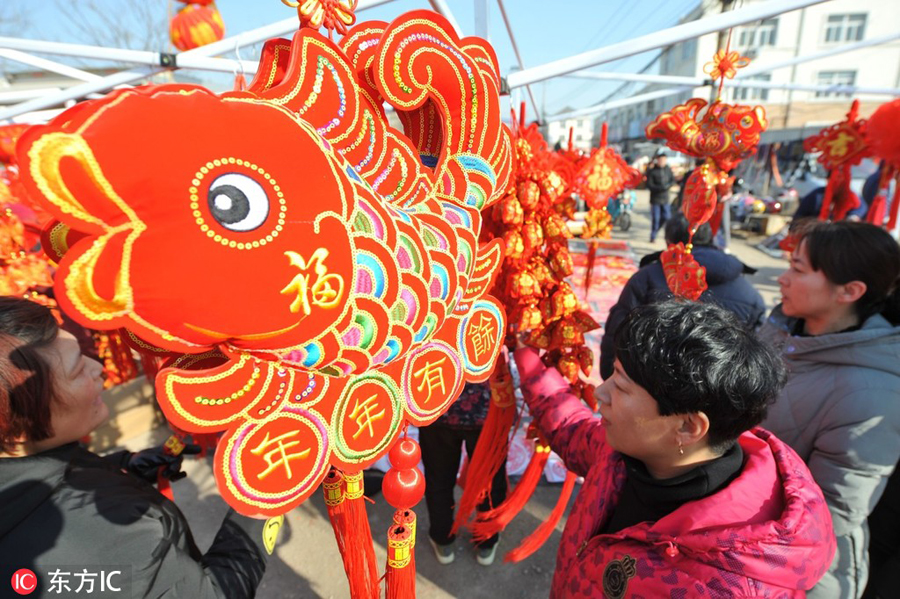 Before setting out to the market, a Spring Festival shopping list must be made, including items such as meat, poultry and eggs, fruit and vegetables, rice and flour, cigarettes, alcohol, sugar, and tea, red paper, images of celestial horses and the Kitchen God. Incense and candles, snacks, new calendars, and toys must also be purchased. Not to be forgotten are new clothes for children and firecrackers to welcome in the New Year.