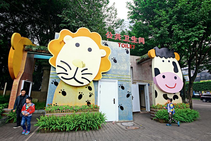 A creative animal-themed public toilet appears in the place between the Jiulongpo district government of southwest China’s Chongqing and the local zoo.