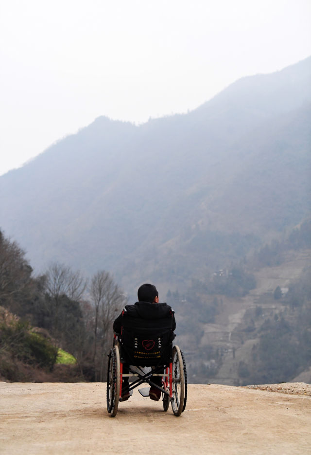 单从背影,你能想象坐在轮椅上的是个12岁的孩子吗?他叫罗安松,因患进行性肌营养不良,从6岁起,一直被困轮椅。看着村里其他的孩子们奔跑撒欢,他只想站起来。或者,就坐在轮椅上,去山的外面看一看也行。